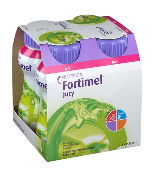 To Fortimel Jucy είναι τρόφιμο για ειδικούς ιατρικούς σκοπούς για τη διατροφική διαχείριση δυσθρεψίας που σχετίζεται με ασθένεια. Είναι πόσιμο θρεπτικό συμπλήρωμα υψηλής ενέργειας ελεύθερο γλουτένης, λακτόζης, λιπαρών και εδώδιμων φυτικών ινών. Διαθέσιμο σε 2 γεύσεις, πορτοκάλι και μήλο! Κατάλληλο ως εναλλακτική στα θρεπτικά σκευάσματα με γαλακτώδη υφή.