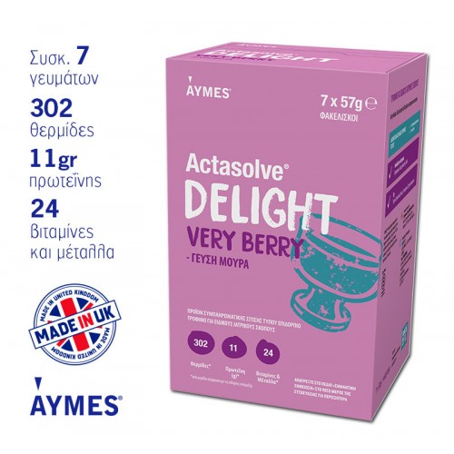 Το ActaSolve® Delight είναι συμπλήρωμα διατροφής για ειδικούς ιατρικούς σκοπούς (FSMP.) Είναι μια σκόνη με βάση το αποβουτυρωμένο γάλα με πρόσθετους υδατάνθρακες, λιπαρά, βιταμίνες και μέταλλα, η οποία παρέχει ένα διατροφικά ισορροπημένο συμπλήρωμα τύπου επιδόρπιου όταν αναμιγνύεται με πλήρες γάλα. Iδανικό για άτομα που αντιμετωπίζουν διατροφικές προκλήσεις όπως δυσφαγία και δυσκατάποση λόγω ασθενειών ή χειρουργικών επεμβάσεων, όπως ηλικιωμένους και άτομα με ευπάθεια, ασθενείς με νευρολογικές διαταραχές αλλά και άτομα σε αποθεραπεία μετά από εγχειρήσεις. Ενδείκνυται για παιδιά άνω των 6 ετών.