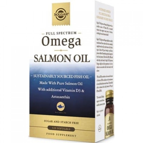 Το SOLGAR Full Spectrum Omega Salmon Oil παρέχει ένα πλήρες φάσμα ωμέγα - 3, 5, 6, 7 και 9 - ως φυσικά τριγλυκερίδια. Παράλληλα, στη φόρμουλά του περιλαμβάνει βιταμίνη D3 υποστηρίζοντας το ανοσοποιητικό σύστημα και ασταξανθίνη. Είναι μια φόρμουλα ειδικά σχεδιασμένη για να θρέφει το σώμα παρέχοντας συστατικά βέλτιστης καθαρότητας και δραστικότητας.